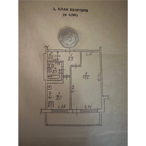 Квартира розташована на високому 1 поверсі 9-поверхового будинку, загальна площа — 38 м².