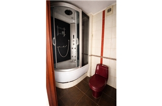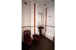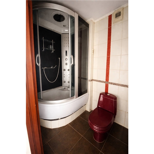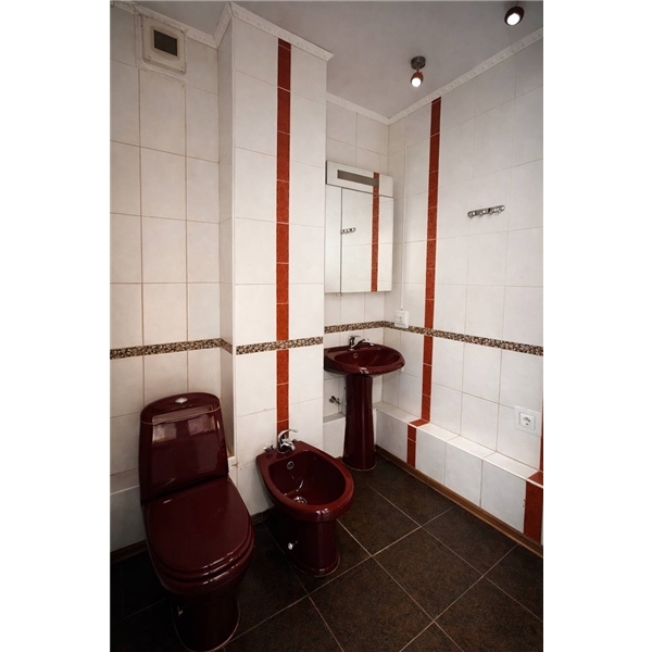 Санвузол суміжний, облицьований плиткою. Встановлені душова кабіна та біде.