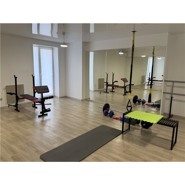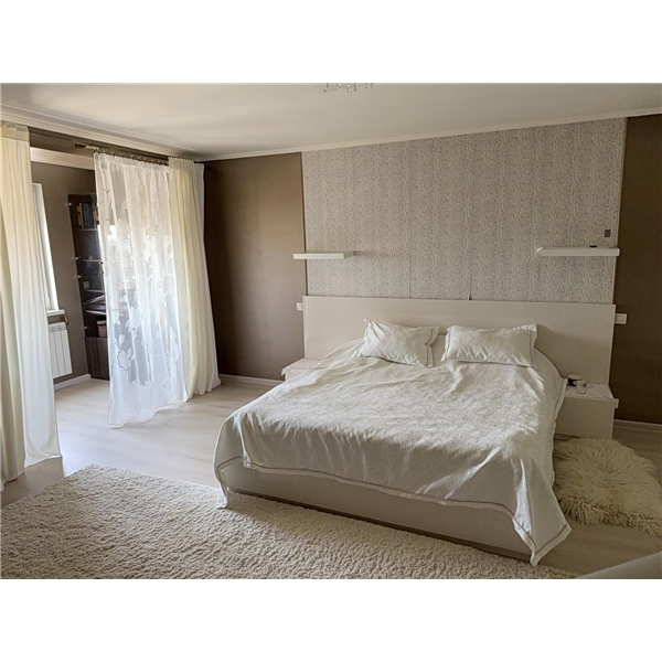 2й поверх 150м2 - дві окремі спальні (одна з великим двоспальним ліжком, друга — з двома полуторними для дітей), гардеробна, великий спортзал, комора, санвузол із повноцінною ванною.