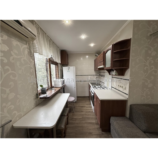 Формат – простора кухня-студія, 1 прохідна, 1 окрема кімната, сумісний санвузол, балкон. Розташована на 4му поверсі 5 поверхівки, з вікнами на тихе та зелене подвір'я.