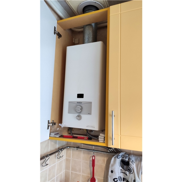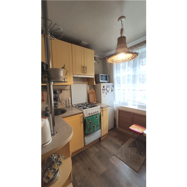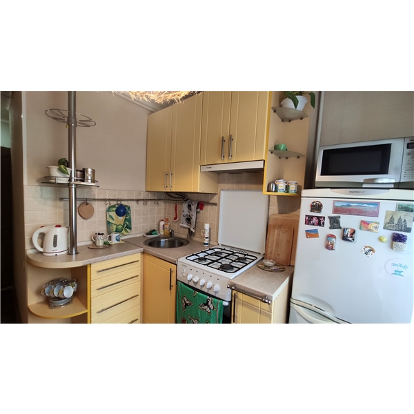 Кухня вбудована, нова газова плита і сучасна газ. колонка-автомат — гаряча вода є завжди. Сумісний санвузол.