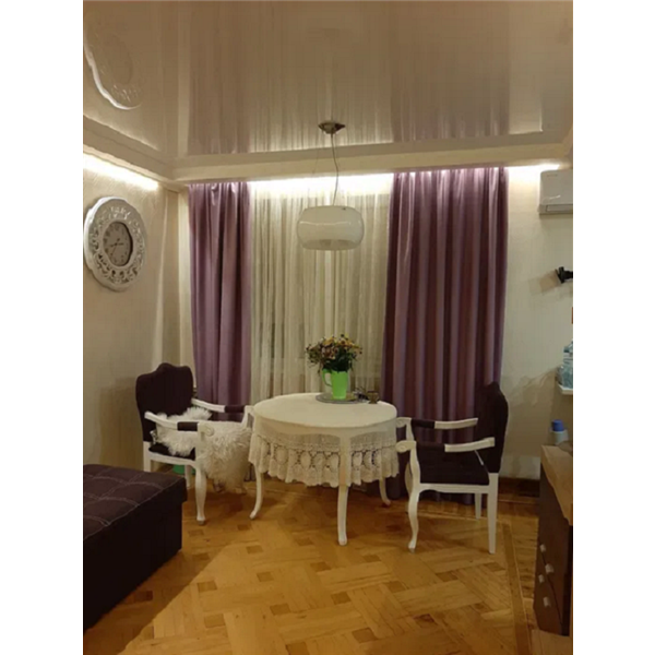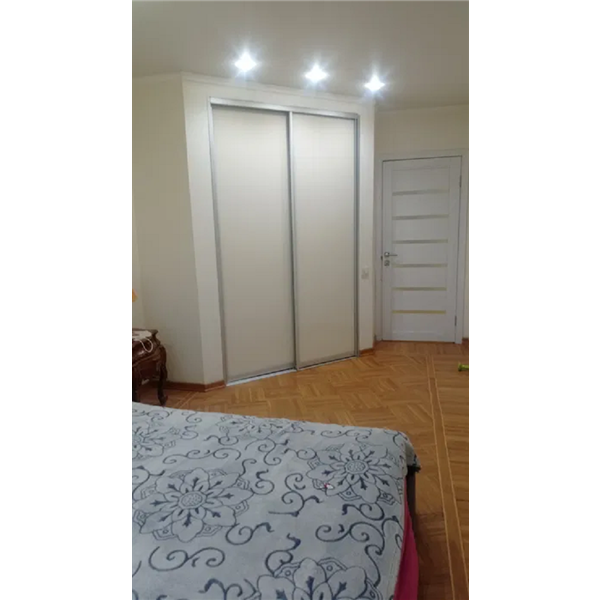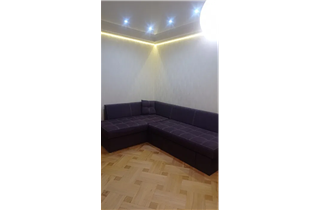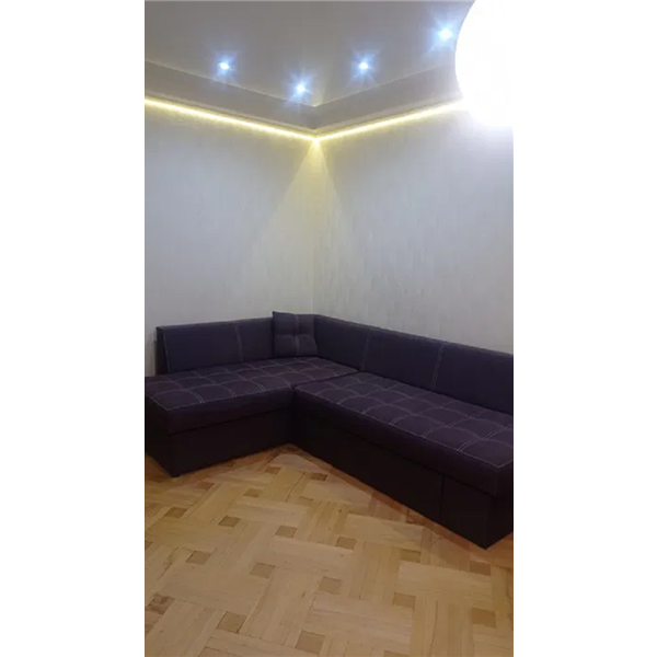 Меблі- вбудована кухня, вугловий великий диван, дві гардеробних, шкіряне ліжко.