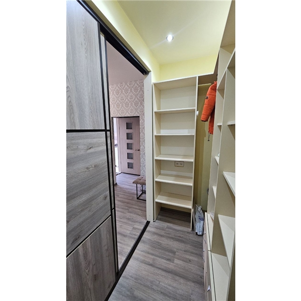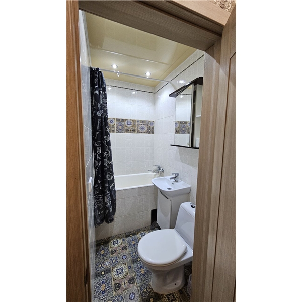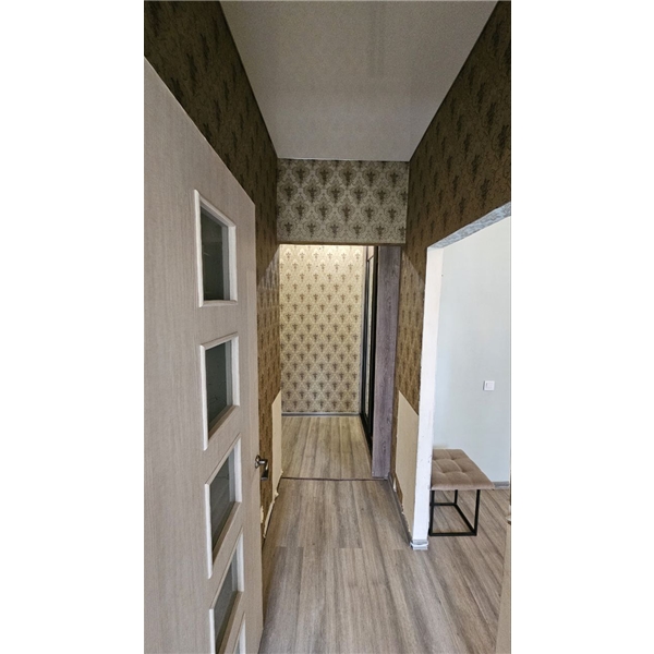 Есть просторный гардероб, новые окна и батареи.