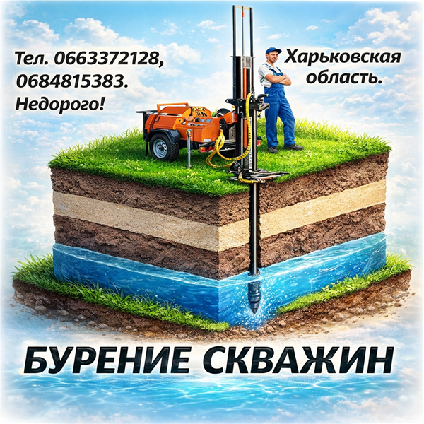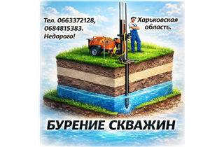 Буріння свердловин у Харкові та Харківській області! Використовуються лише надійні та перевірені матеріали. Індивідуальний підхід до кожного клієнта. Недорого. Якість гарантуємо!