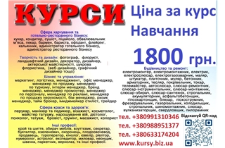Сфера харчування та готельно-ресторанного бізнесу: кухар, кондитер, сушіст, піцайоло, пекар, бармен, бариста, офіціант, флейрінг. кальянник, адміністратор готельного бізнесу, адміністратор ресторанного бізнесу