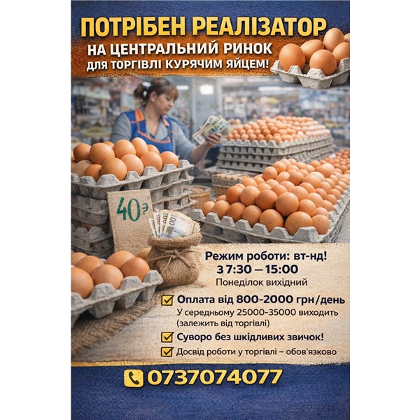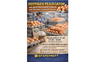 Потрібен реалізатор на Центральний ринок для торгівлі курячим яйцем!