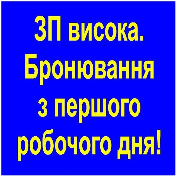 З/п висока, БРОНЮВАННЯ з першого робочого дня!