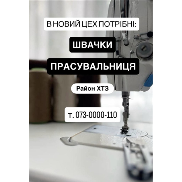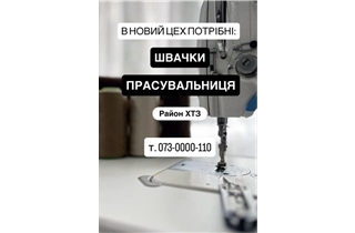 • досвід роботи від 2х років (оверлок, прямострочка, розпошив)